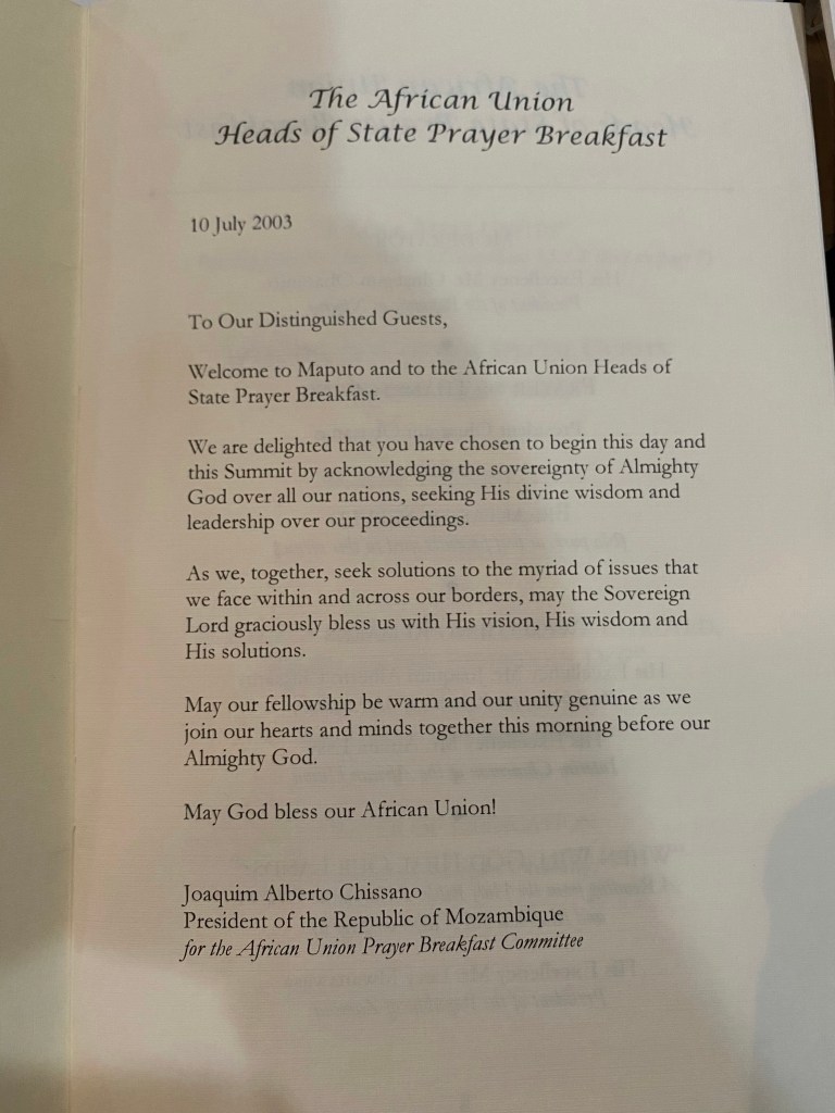 This has nothing to do with the report, but I’ll share it anyways. One of the things Steve Baughman accused my Dad of lying about at one point, was his address at the African Heads of State Prayer Breakfast.